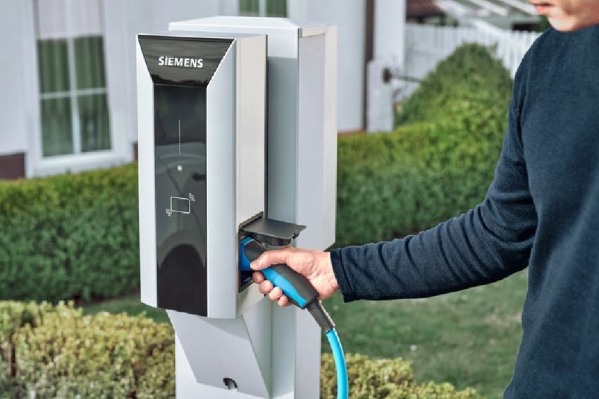 Estação de carregamento veicular residencial.